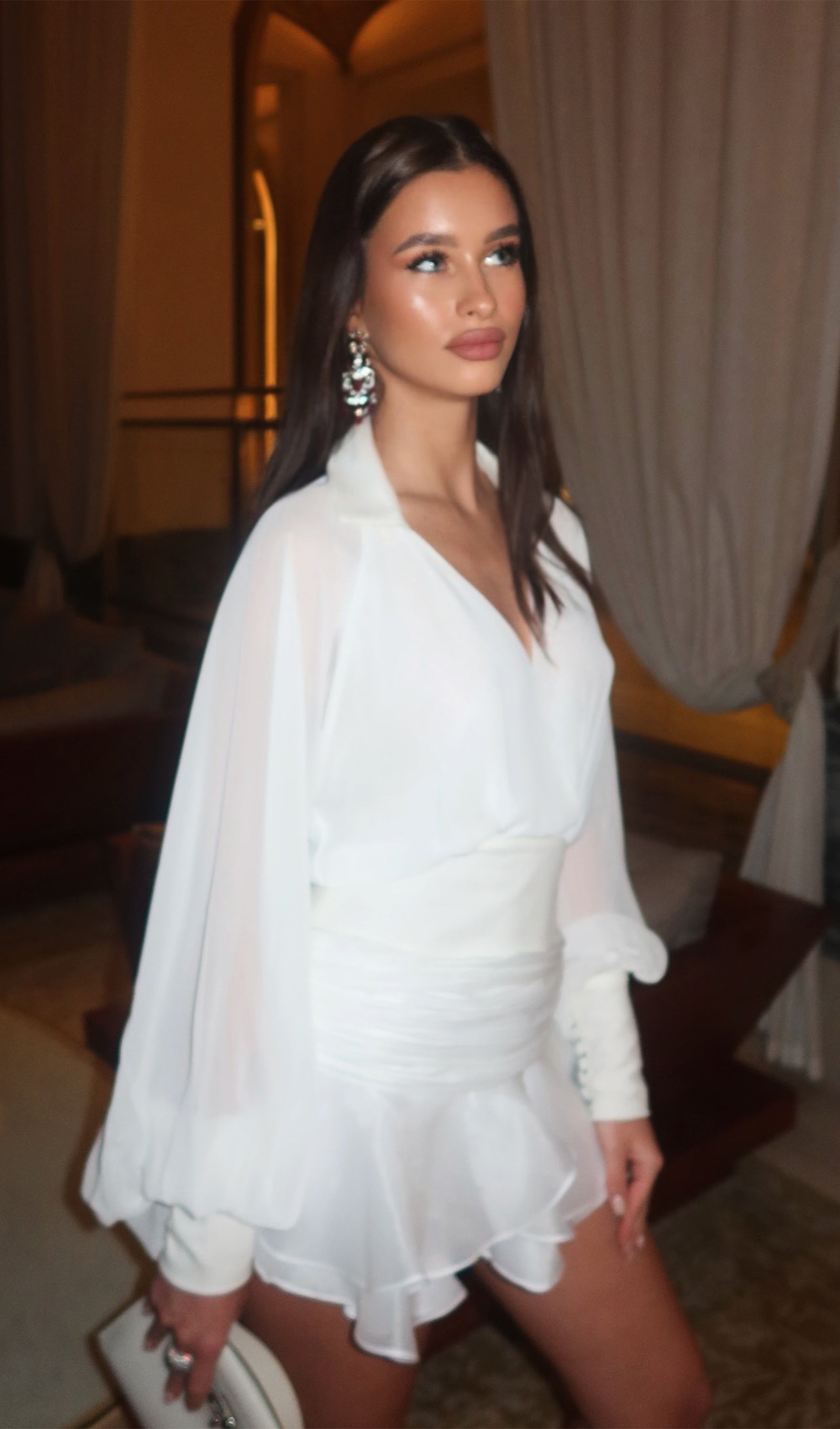 This Solid Lantern Sleeve Mini Dress is a must-have for any fashion-forward wardrobe. The chic lantern sleeves add a touch of drama and sophistication, while the high-quality fabric provides a comfortable, flattering fit.The neckline and cuff expertly crafted from luxurious 100% silk. Perfect for any occasion, this dress is a versatile and stylish addition to your closet.